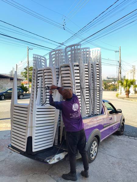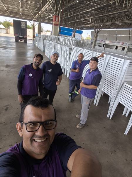 Após cada uso, todos os itens passam por um processo de higienização e revisão de segurança, garantindo mesas e cadeiras limpas, resistentes e de alta qualidade para o próximo evento.