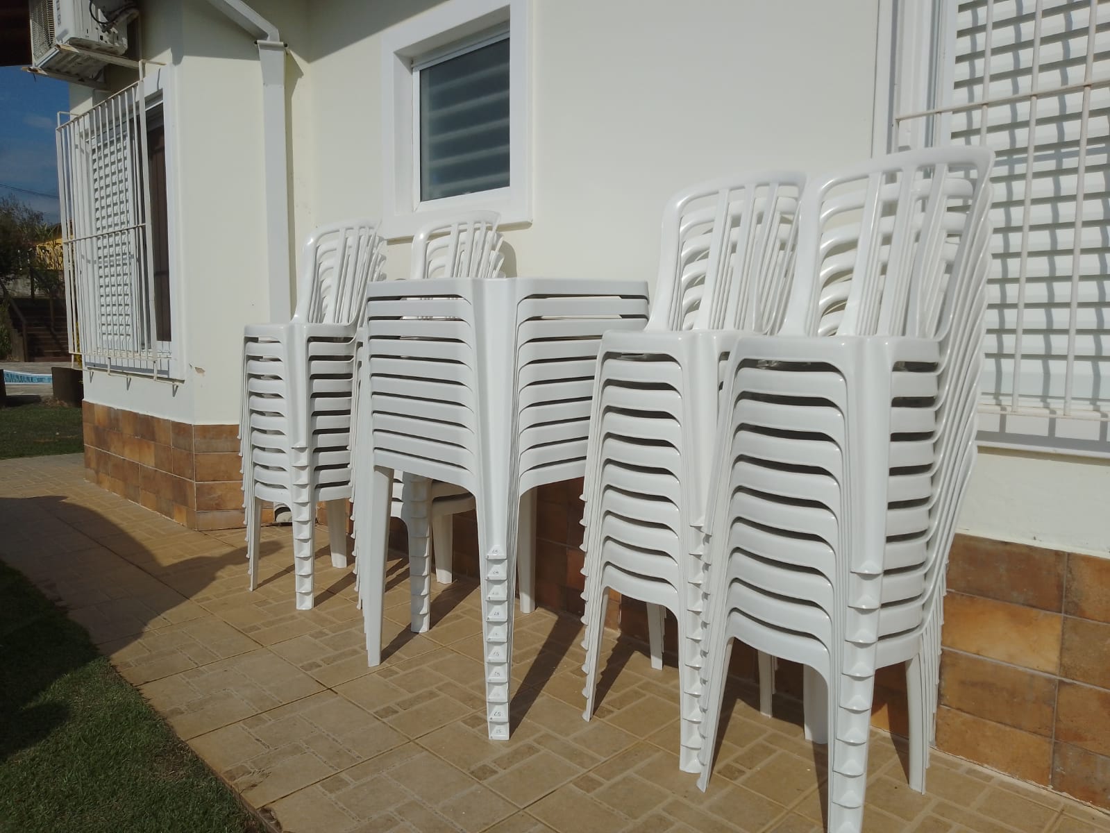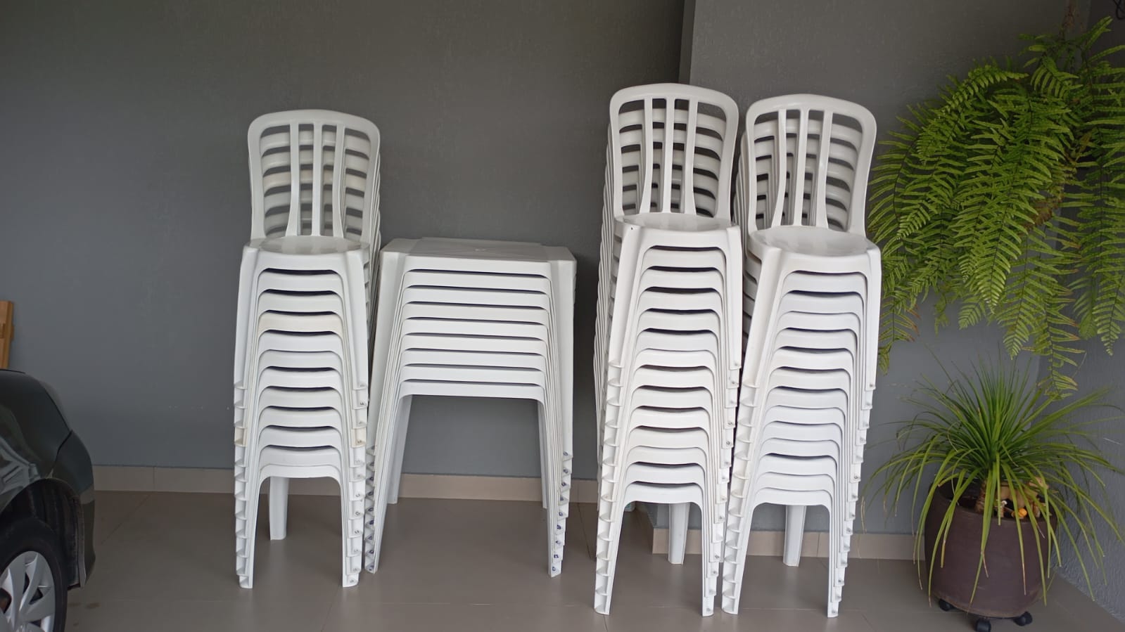 Mesas e cadeiras de plástico para festas